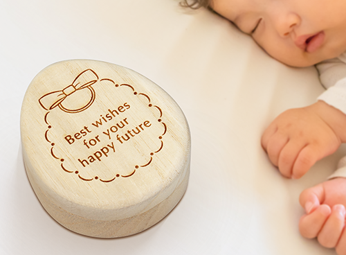 ● 桐素材が臍帯箱内の湿度を調節し一定の状態に保つため、臍の緒をきれいに保管できます。